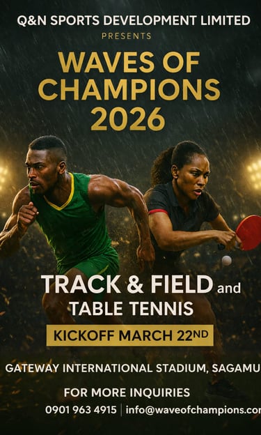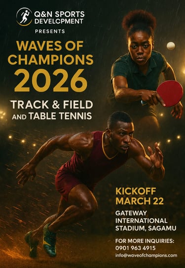 Join us for the upcoming Wave of Champions Youth Sports Programme, dedicated to talent identification and early athlete development. This landmark event will unite young athletes, experienced coaches, and professional scouts with a shared goal of discovering, developing, and nurturing the next generation of champions for Nigeria.